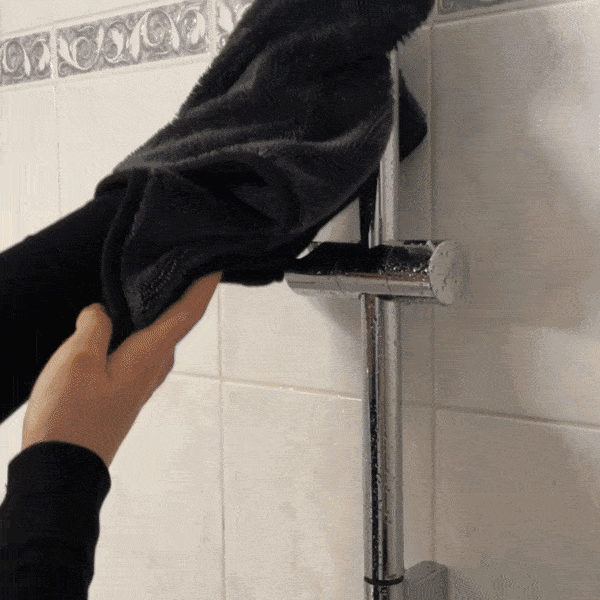 Den texturerade sidan skrubbar bort kalk och tvålrester medan den mjuka sidan absorberar upp till 800 ml vatten och lämnar en spegelblank yta utan ränder.